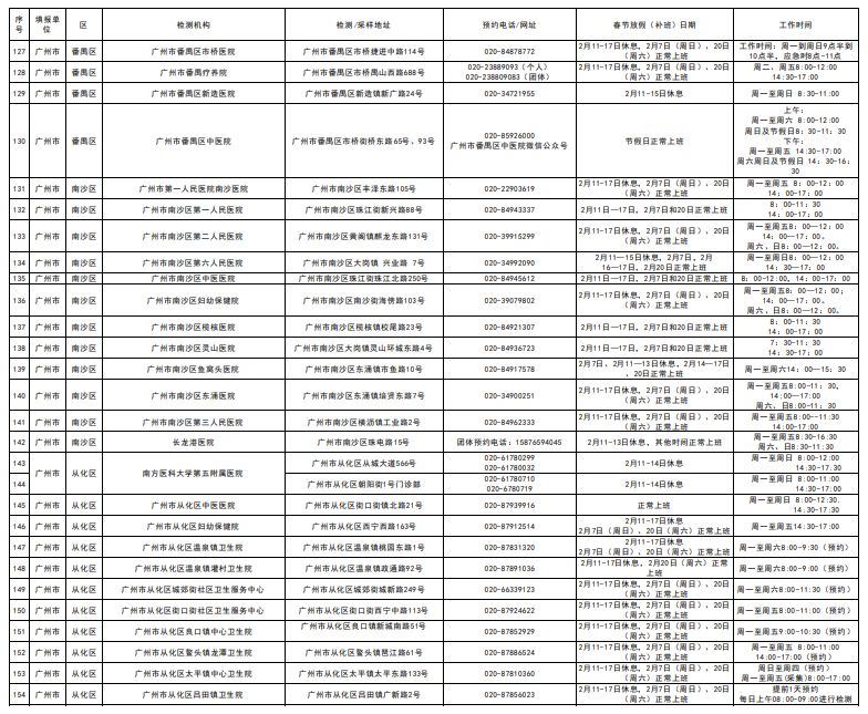 答:全市可以做新冠病毒核酸检测的医疗机构共计167家(机构名单、地址、联系方式、预约渠道和春节前后开放时间附后),市民朋友可按照方便、就近的原则,自行选择适合自己的检测点,提前预约检测时间,到达医院后应按照医院工作人员指引,有序排队等候,避免人员聚集。