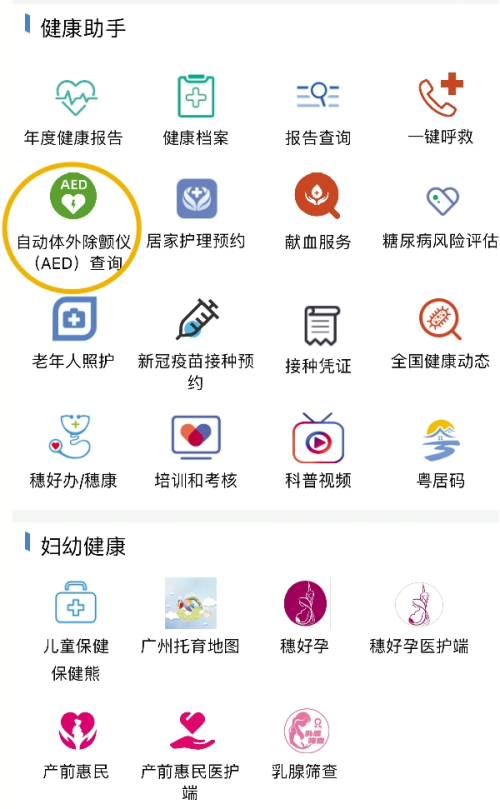 记者了解到,目前市民可以通过微信小程序“广州健康通”中的“自动体外除颤仪(AED)查询”,查询自己所在位置附近的AED设备存放位置。