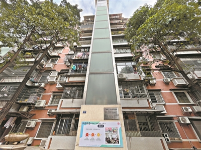 从北片大门进入小区,指着靠门那几栋楼的加装电梯,许立说:“这是前期安装的,用了玻璃钢结构,电梯美观,但材料相对容易破损,后期维护费用高。后期加装的电梯在条件许可的情况下一般改为混凝土结构。”来到南片的一栋临街的楼房楼下,许立说:“这里由于地理位置的原因,加装电梯会占用公共道路,加上这栋楼只有6层,一层两户,加装电梯的投入费用较高,所以加装电梯难度较大。”