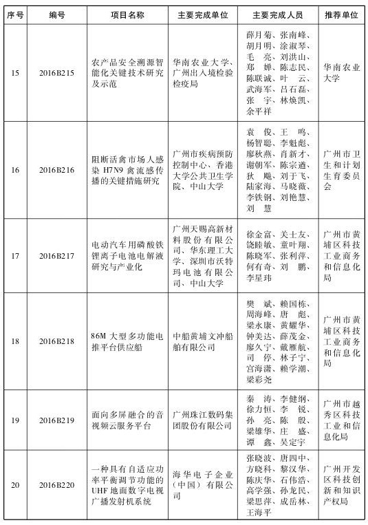 大阳城集团娱乐视频关于授予2016年广州市科学技术奖的通报