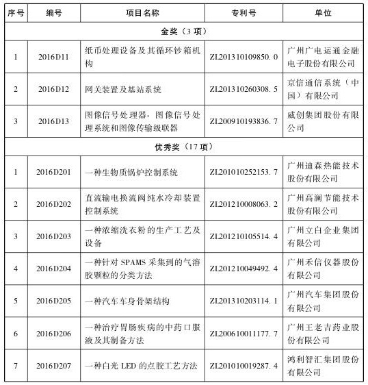 为充分发挥知识产权制度激励创新的基本保障作用,市政府同意授予“广州三环专利代理有限公司”等3家公司2016年广州市知识产权市长奖;授予“纸币处理设备及其循环钞箱机构”等3项专利2016年广州市专利奖金奖;授予“一种生物质锅炉控制系统”等17项专利2016年广州市专利奖优秀奖。