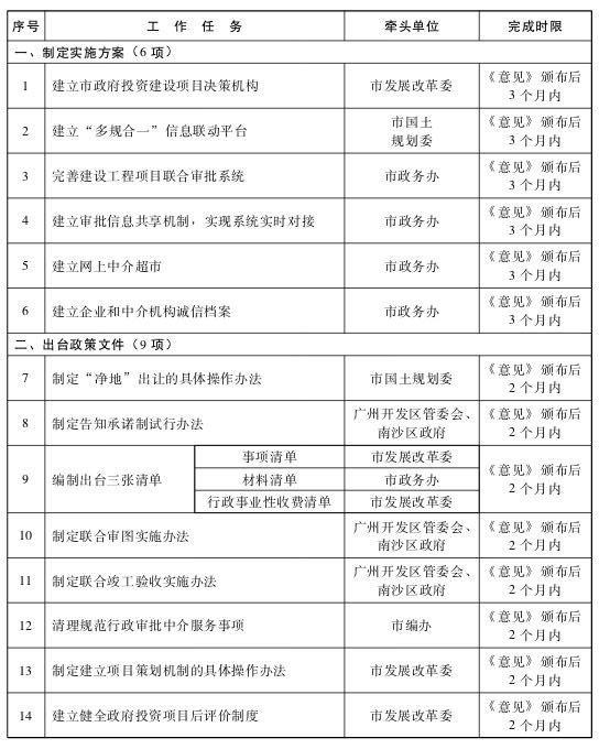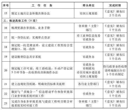 (一)本意见印发后,各部门按《任务工作表》有关工作和时限要求完成由本部门牵头落实的相关工作,由市政务办汇总后通过多种渠道向社会公布。
