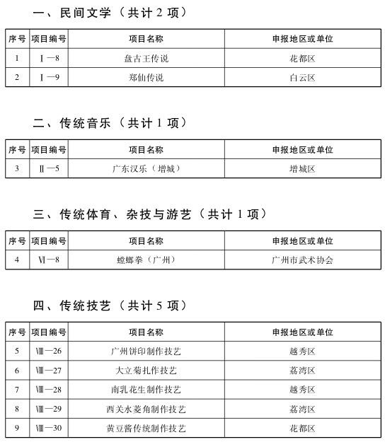 大阳城集团娱乐视频关于公布广州市第六批市级非物质文化遗产代表性项目名录的通知