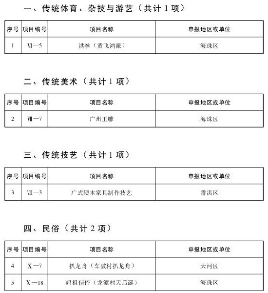 广州市市级非物质文化遗产代表性项目名录扩展项目名录