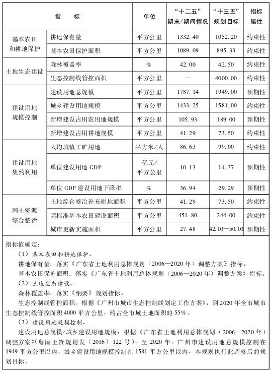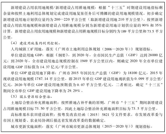 ① 根据《广东省土地利用总体规划(2006—2020年)调整方案》(粤国土资规划发〔2016〕122号),广州市至2020年城乡建设用地规模控制在1581平方公里以内,建设用地总规模控制在1949平方公里以内。