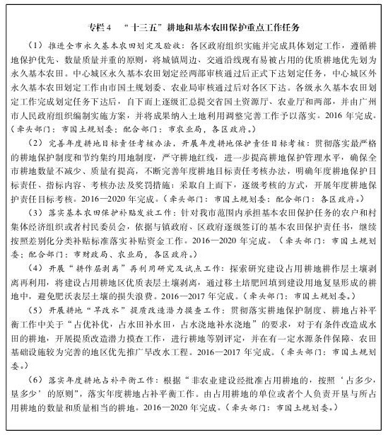 ② 根据《广东省土地利用总体规划(2006—2020年)调整方案》(粤国土资规划发〔2016〕122号),广州市至2020年耕地保有量调整为1052.20平方公里(157.83万亩)。
