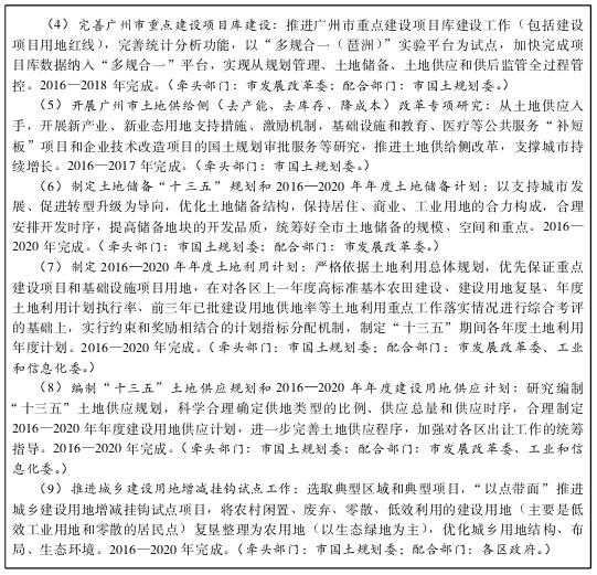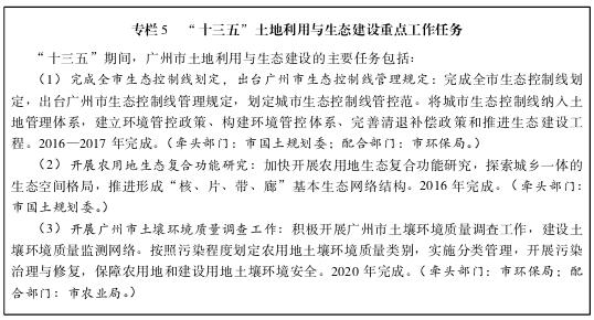 为落实《广州市国民经济和社会发展第十三个五年规划纲要(2016—2020年)》(以下简称《纲要》)要求,本规划以土地利用为基础,按照“目标—政策—保障”的技术框架,以“严守底线,精准保障,协同规划”为主要方法与思路进行编制,并确定以下内容作为本次规划的重点: