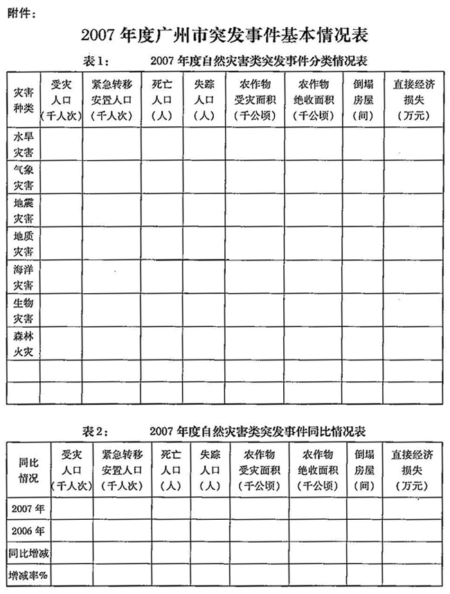 为做好突发事件的年度评估分析工作,根据广东省《关于进一步加强应急管理工作意见》(粤府〔2007〕71号)和广州市突发公共事件总体应急预案的有关要求,经市政府同意,由市应急办组织开展2007年度突发事件应对工作评估分析,请各地、各有关单位按照职责分工,分别对自然灾害、事故灾难、公共卫生事件和社会安全事件四大类突发事件应对工作进行总结、分析和评估。现将有关事项通知如下: