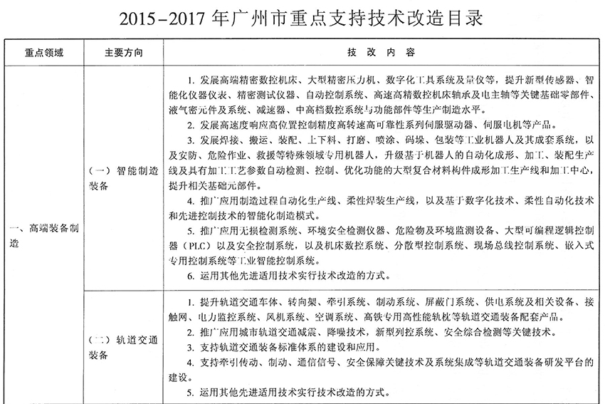 附件:2015-2017年广州市重点支持技术改造目录