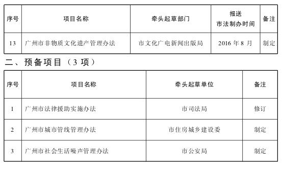各区人民政府,市政府各部门、各直属机构:《广州市2016年度政府规章制定计划》已经市政府14届199次常务会议讨论通过,现印发给你们,请按照以下要求认真组织实施,实施过程中遇到的问题,径向市法制办反映。