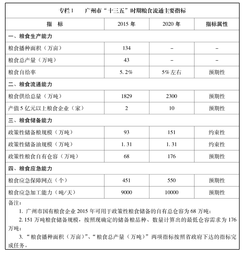 (二)提升骨干粮库。按照标准储备仓和准低温仓的建设标准,重点推进番禺港口粮库二期工程、广州东部粮油储备加工中心和天河区粮食产业基地等项目建设。到“十三五”期末,建成仓容规模达10万吨以上集粮食储备、加工、配送、应急保障于一体的骨干粮库。