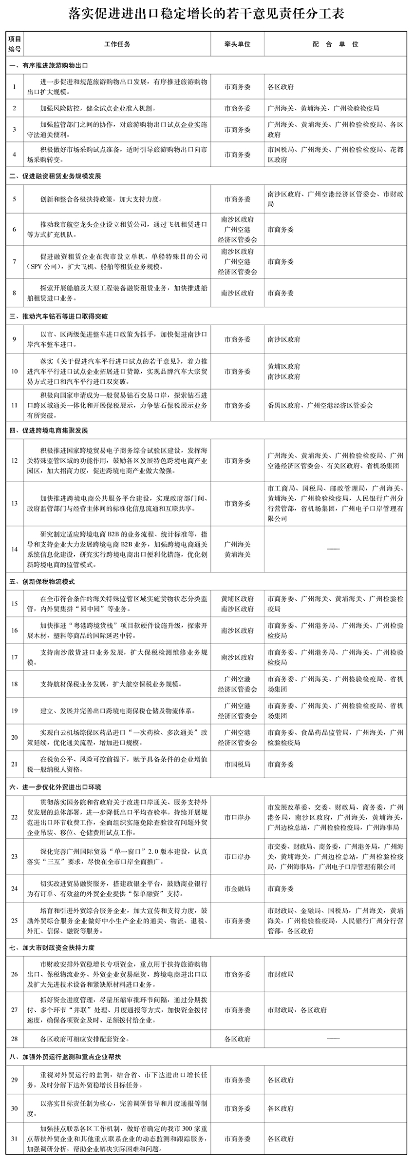 附件:落实促进进出口稳定增长的若干意见责任分工表