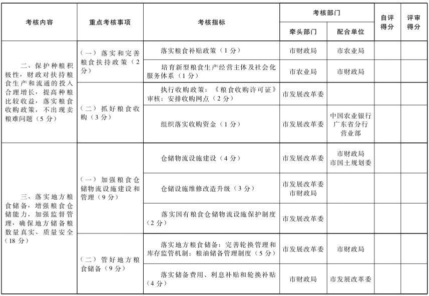 第七条 考核工作由市发展改革委(粮食局)、农业局会同市编办、财政局、国土规划委、环保局、水务局、工商局、食品药品监管局、统计局及广州检验检疫局、中国农业发展银行广东省分行营业部等单位组成考核小组负责具体实施。考核小组办公室设在市发展改革委(粮食局),负责考核日常工作。
