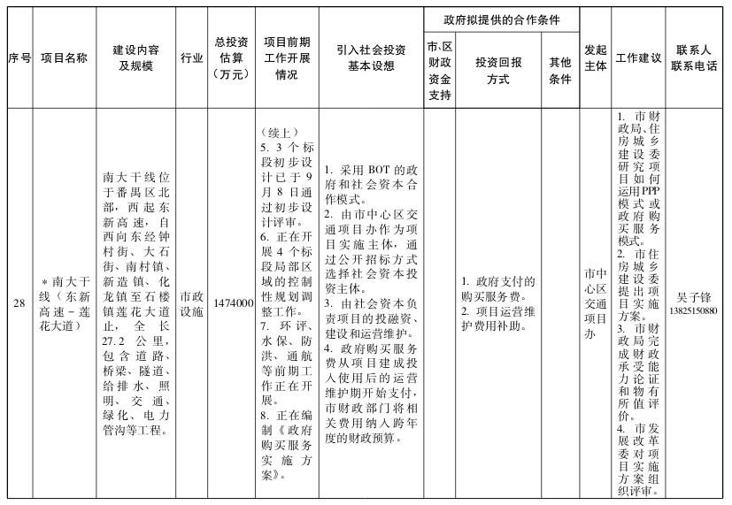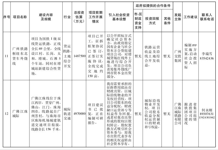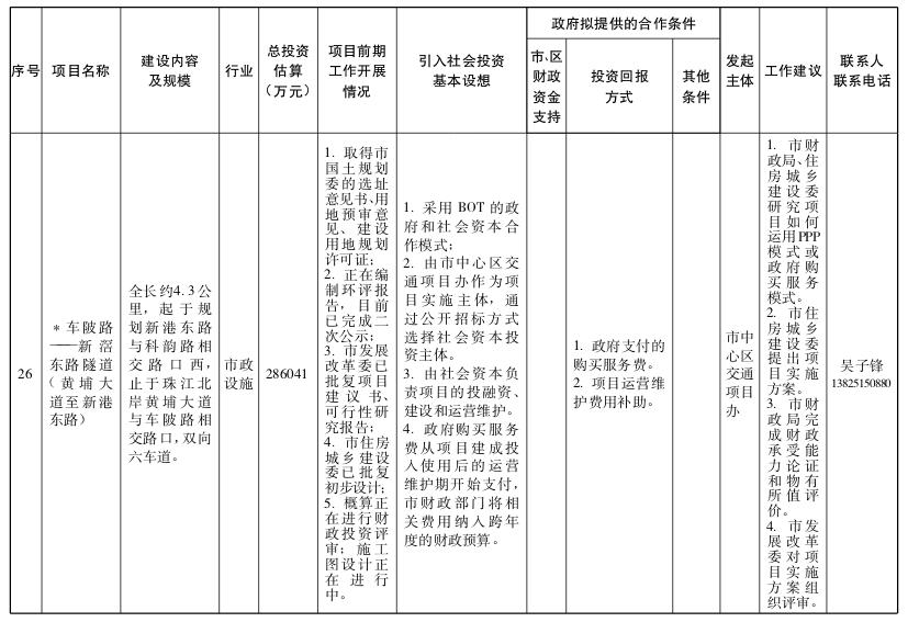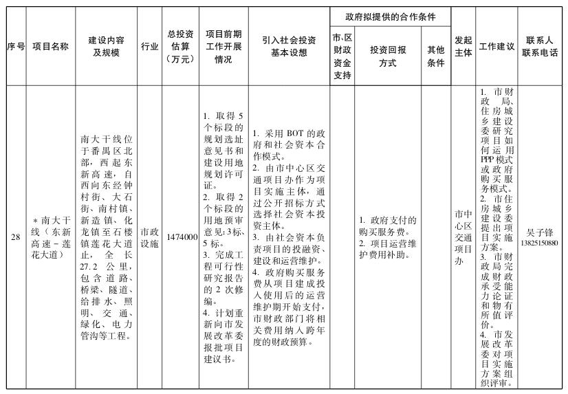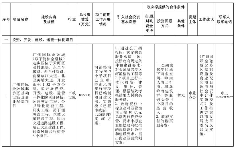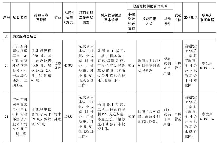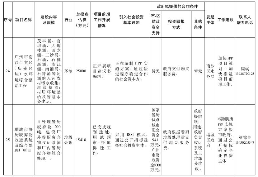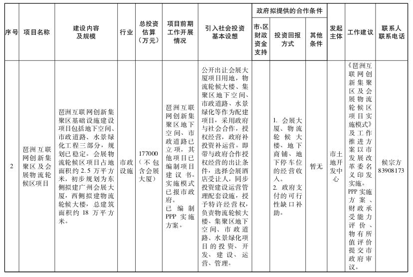 2.广州市政府和社会资本合作试点项目(第一批)