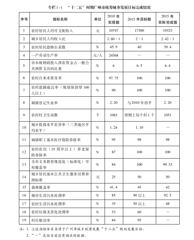 《广州市统筹城乡发展第十三个五年规划》指标体系及说明