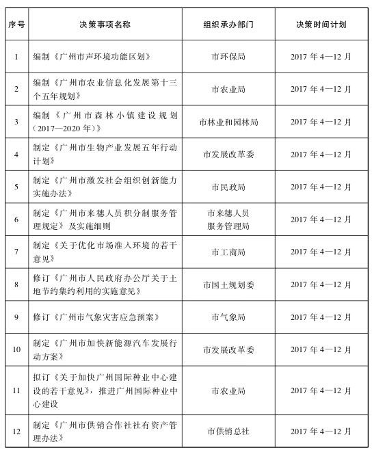 《大阳城集团娱乐视频2017年度重大行政决策事项目录》和《大阳城集团娱乐视频2017年度重大行政决策听证事项目录》已经市人民政府同意,现印发给你们,请按照《广州市依法行政条例》《广州市重大行政决策程序规定》等规定认真组织实施,落实好公众参与、专家论证、风险评估、合法性审查、集体讨论决定等决策必经程序。