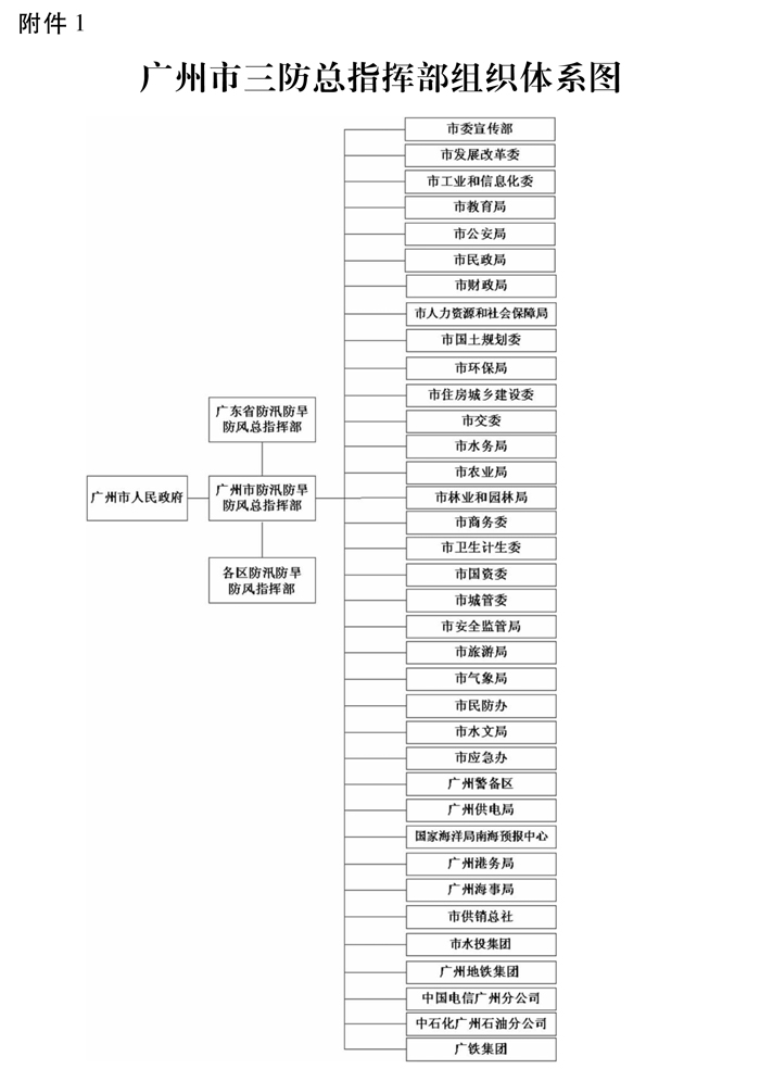 副总指挥:广州警备区司令员、市政府协助分管水务工作的副秘书长、市水务局局长、市气象局局长、市应急办主任。
