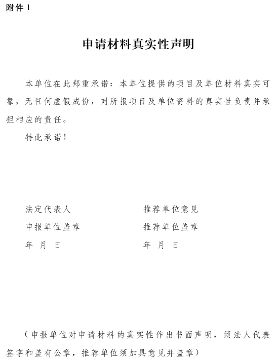 附件:1.申请材料真实性声明