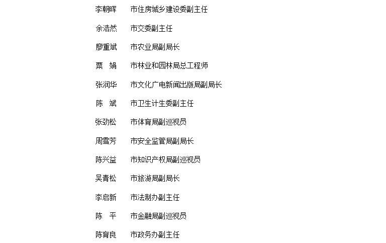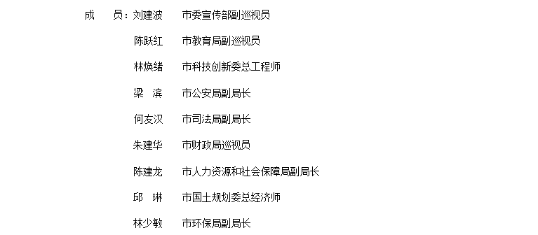 联席会议由市工商局等36个单位组成。市工商局为牵头单位,由主要负责同志担任召集人,市工商局、编办、发展改革委、工业和信息化委、民政局、商务委、质监局、食品药品监管局分管负责同志担任副召集人,其他成员单位分管负责同志为联席会议成员。联席会议成员因工作变动等原因需要调整的,由所在单位提请联席会议确定。联席会议可根据工作需要,增补相关部门为成员单位。联席会议日常工作由市工商局承担。联席会议设联络员,联络员由各成员单位有关处室负责同志担任。具体成员名单如下: