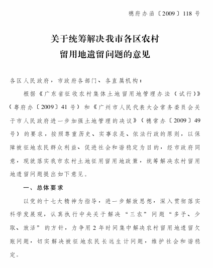 请下载附件:关于统筹解决我市各区农村留用地遗留问题的意见.ceb