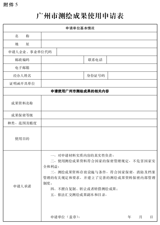 5.广州市测绘成果使用申请表