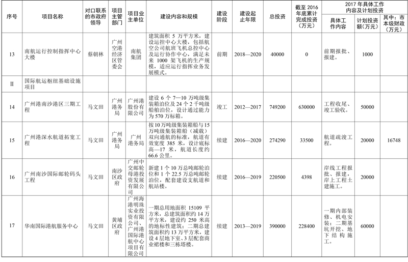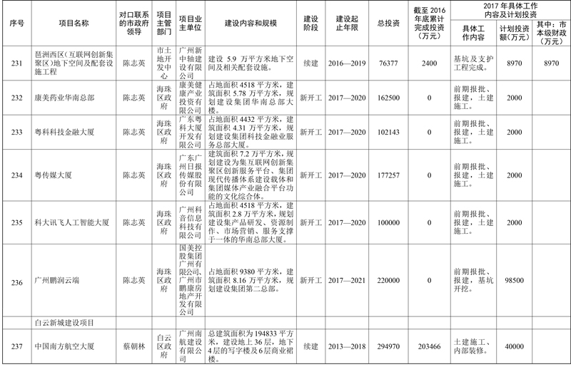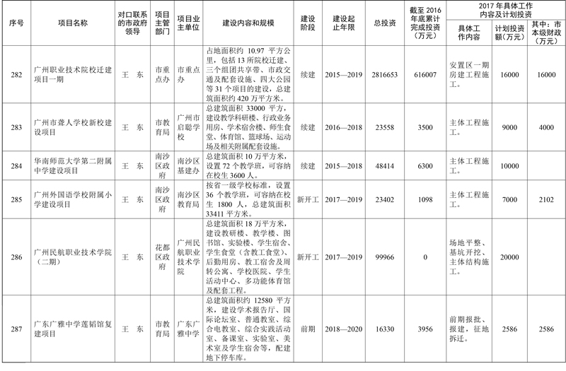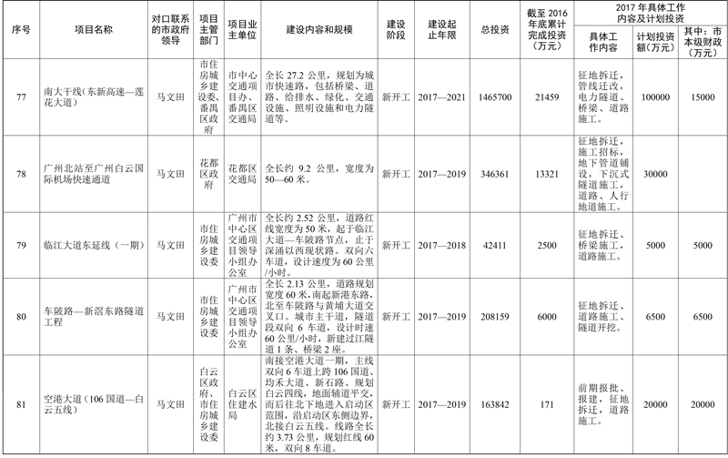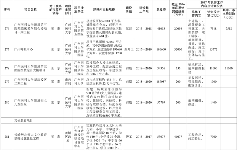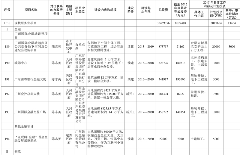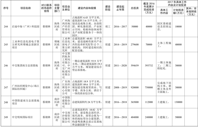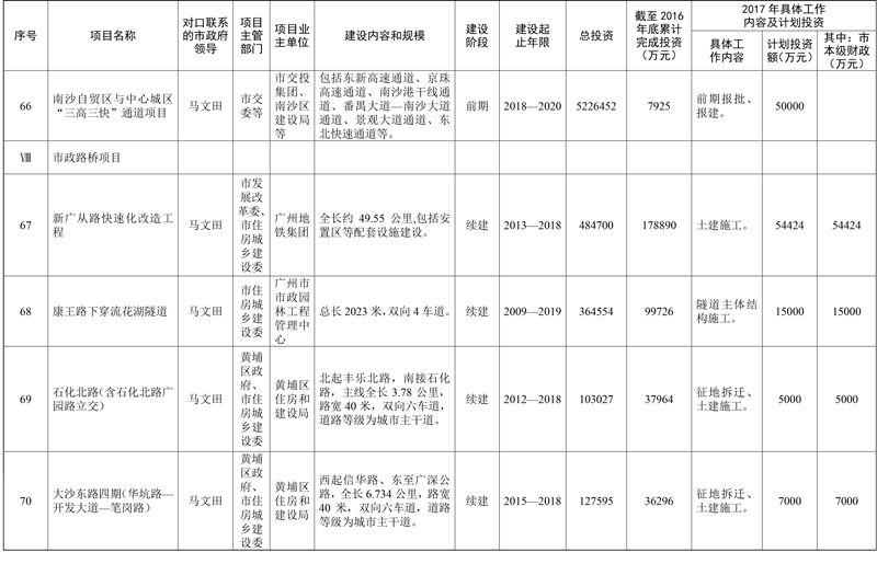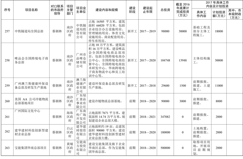 2017年市重点项目市政府领导分工方案