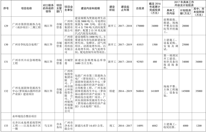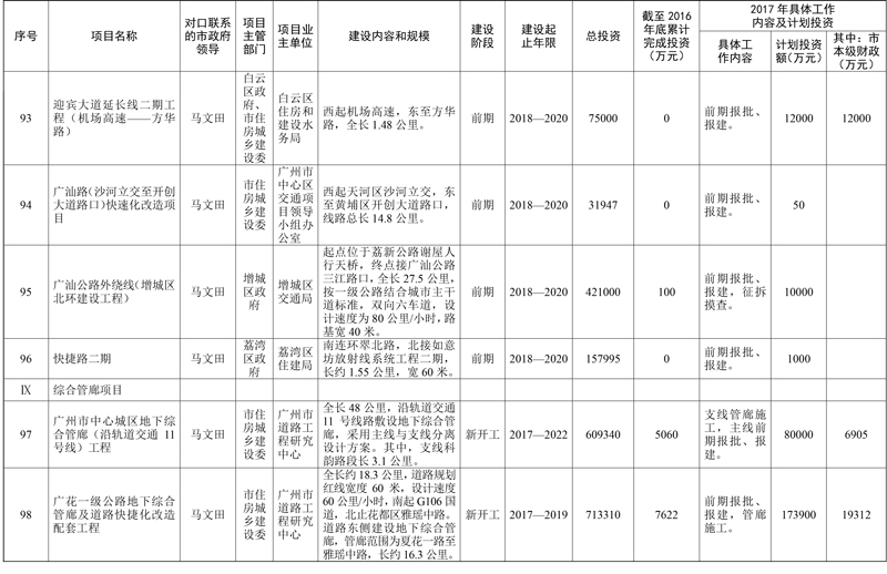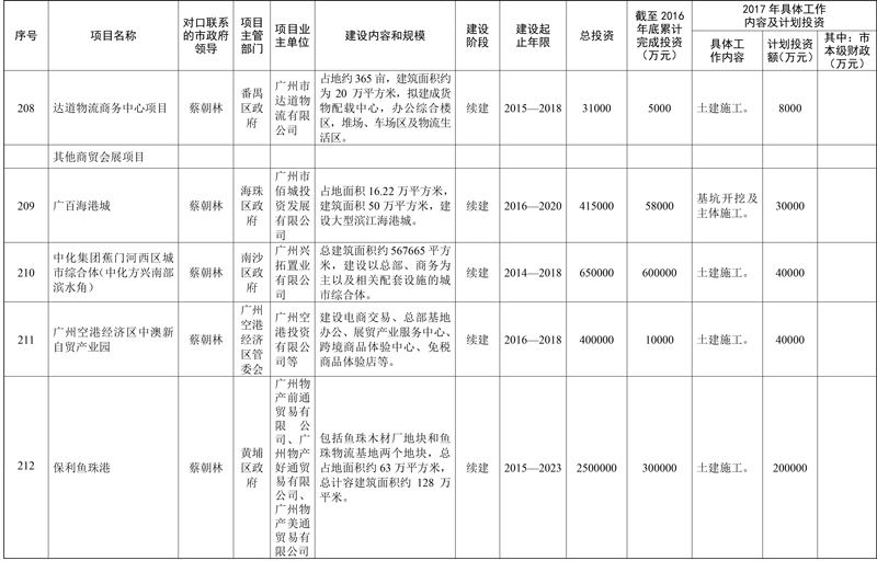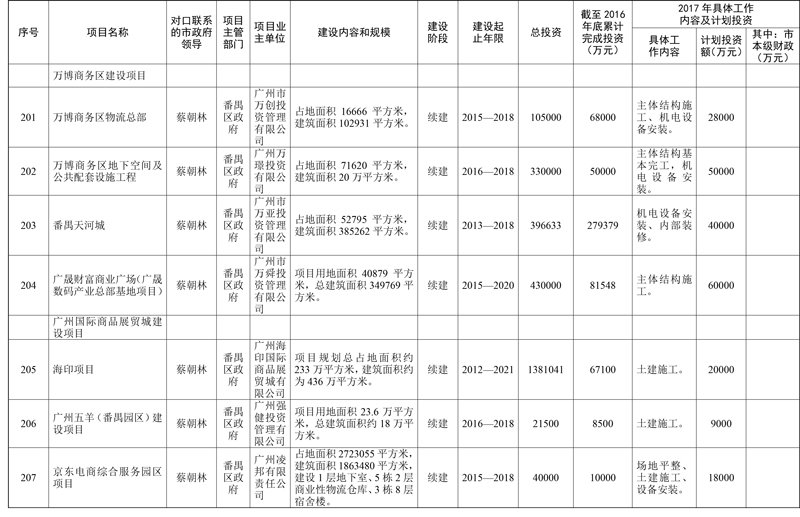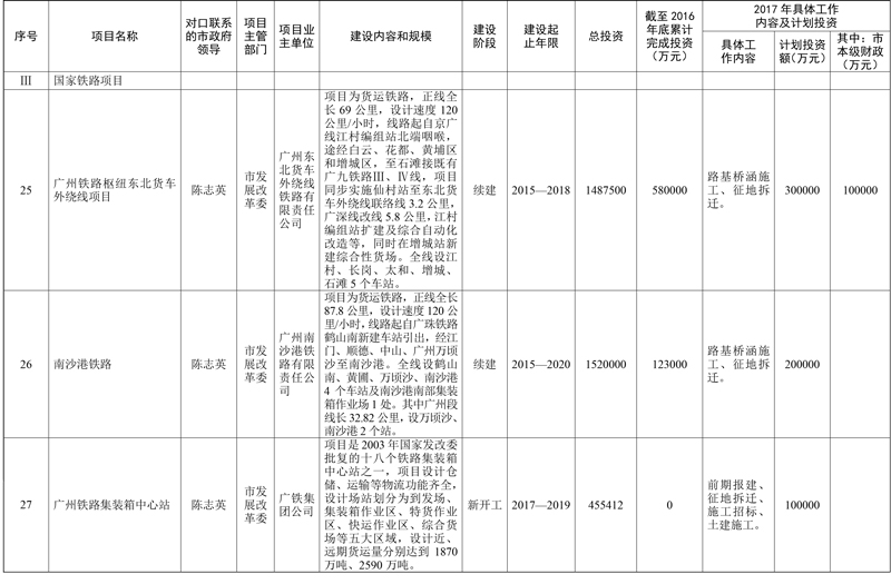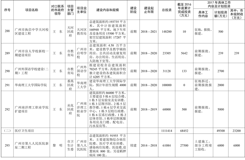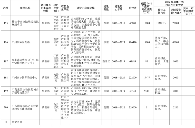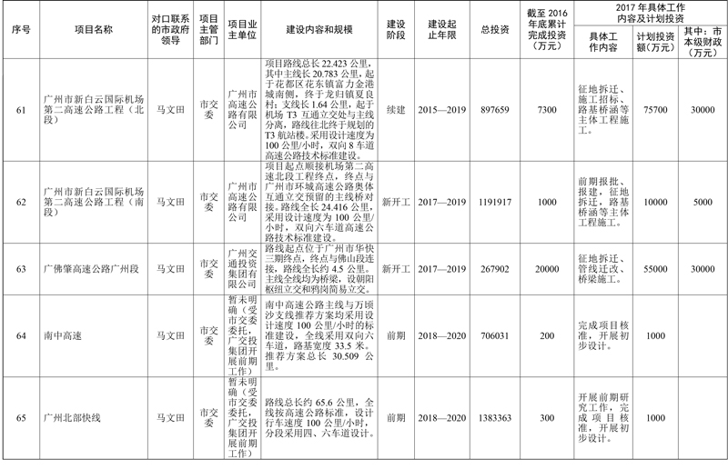 2017年市重点项目市政府领导分工方案