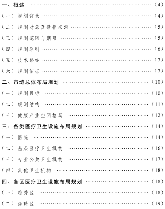 1.现状分析。全面调查掌握广州市各级各类医疗卫生机构的数量、规模和分布情况,以及各级各类医疗卫生设施的功能分工、运行情况。结合医疗卫生资源的供给特点和变化规律,分析医疗卫生资源配置存在的主要问题。