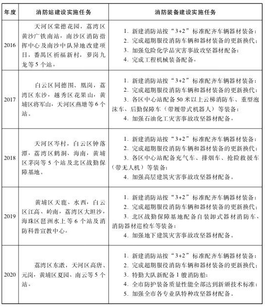 “十三五”期间广州市消防站和消防装备建设任务计划表