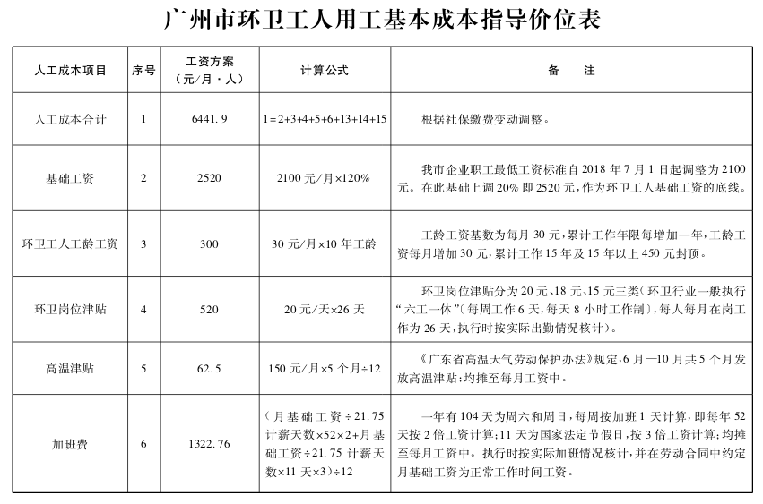2.广州市环卫工人用工基本成本指导价位表