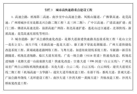 (七)尚未形成与佛山、惠州、东莞、中山、肇庆、清远等周边城市快速通达的交通体系,在铁路、城际轨道、地铁、公路、市政道路、港口航道等方面的衔接、协调需要进一步加强。