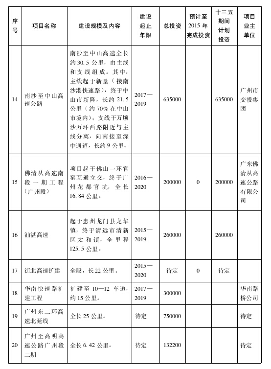 1.《珠江三角洲基础设施建设一体化规划(2009—2020年)》;