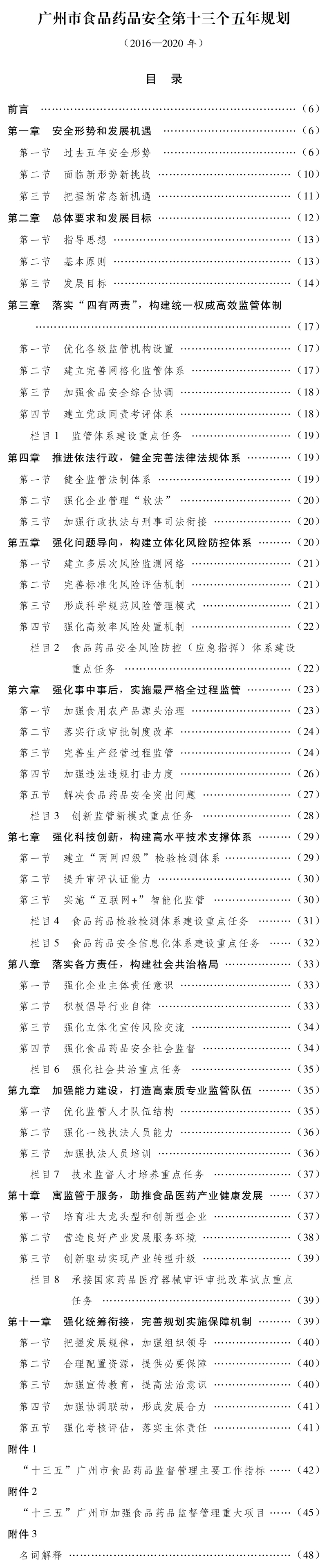 “十三五”时期(2016—2020年)是落实“四个全面”战略布局和食品药品“四个最严”总体要求的重要时期,是加快食品药品安全监管体制改革,完善统一、权威、高效食品药品安全治理体系的攻坚时期,是全面提高食品药品安全水平的关键时期。本规划根据《广州市国民经济和社会发展第十三个五年规划纲要(2016—2020年)》(穗府〔2016〕6号)编制,提出未来五年我市食品药品安全的发展目标、主要任务、重点项目和保障措施,是我市提升食品药品安全水平的纲领性文件。