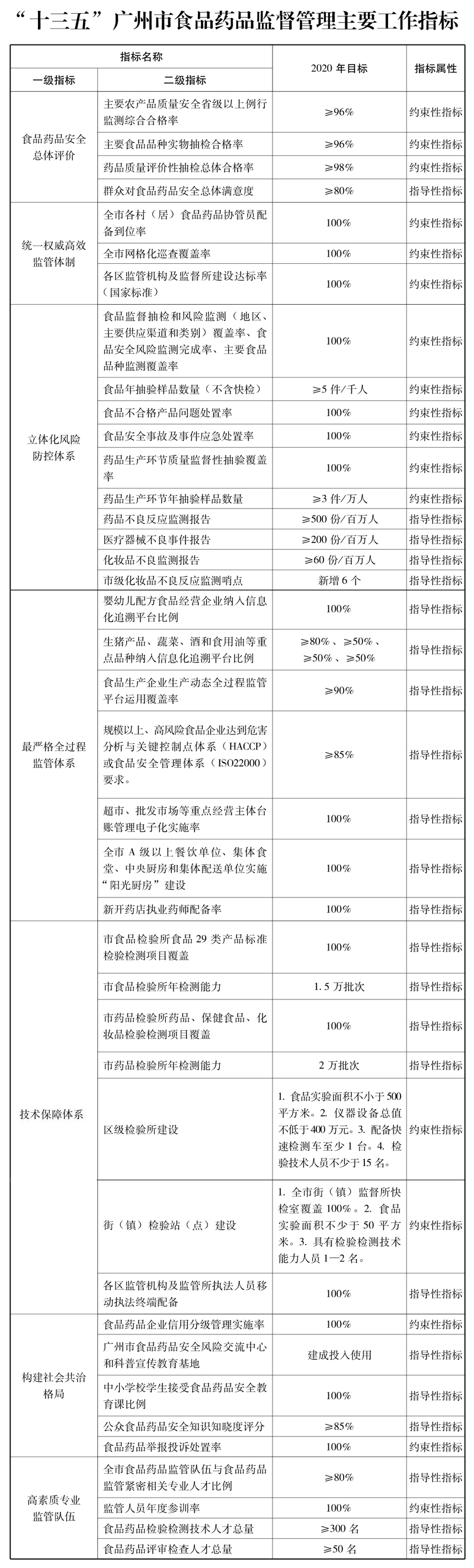 附件:1.“十三五”广州市食品药品监督管理主要工作指标