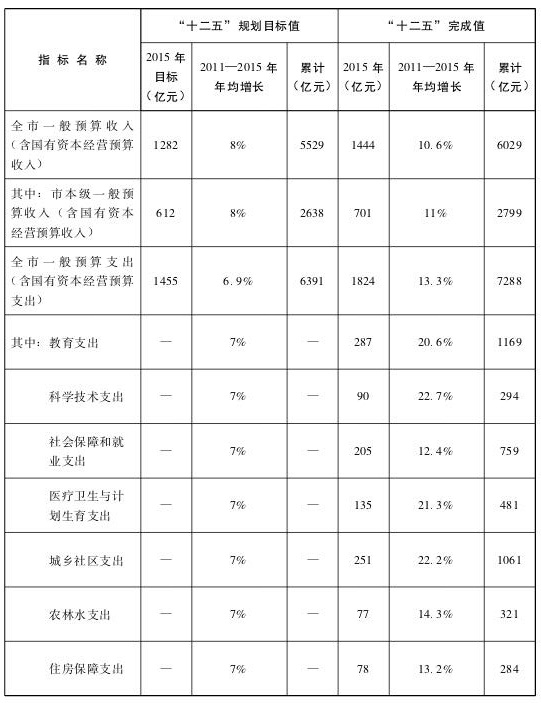 注:1.2015年年完成值是实际支出数,包括年初预算、省下达的、上年结转等资金,“十三五”时期一般公共预算支出是以2015年年初预算数据为基数进行测算。