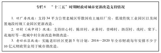 (二)推进城市更新改造。有序推进重点功能区、城乡结合部等“三旧”区域改造以及城市老旧社区“微改造”,支持“城中村”改造和综合整治工作,加快推进若干环境脏乱差、公共服务配套落后、外来人员过度混杂的中心城区“城中村”改造和整治。利用好“三旧”改造和城市更新政策,采用多元化筹措资金,创新城市更新改造融资体系,由政府引导吸引市场内各方资本参与,引入国家政策性资金、政府和社会资本合作模式(PPP)参与改造。