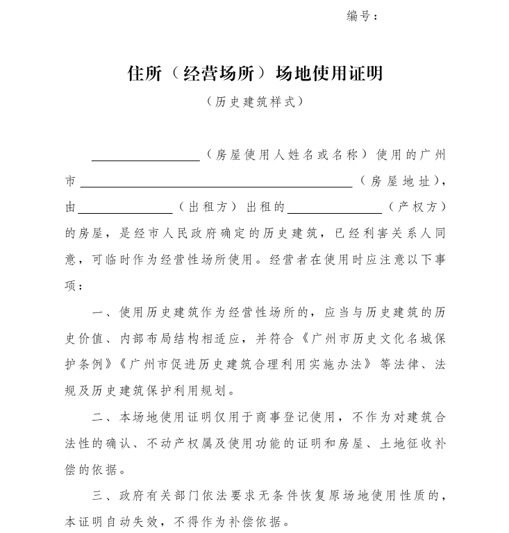 3.住所(经营场所)场地使用证明(历史建筑样式)