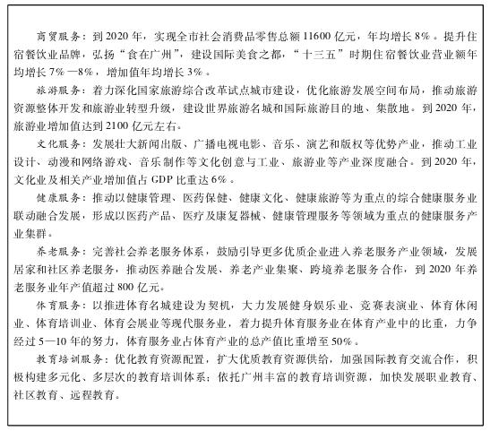 “十二五”时期,广州围绕建设国家中心城市总目标,深入开展国家服务业综合改革试点,加快发展现代服务业和新业态,全力以赴调结构、促改革、谋创新,顺利完成了“十二五”服务业规划发展目标和任务,为今后十年服务经济发展奠定了坚实基础。