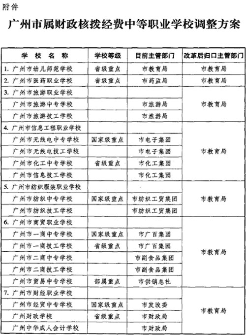 附件:广州市属财政核拨经费中等职业学校调整方案