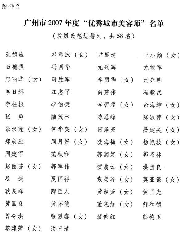 2.广州市2007年度“优秀城市美容师”名单