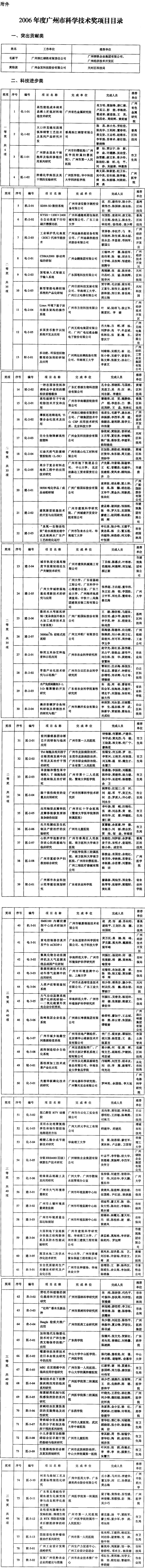附件:2006年度广州市科学技术奖项目目录