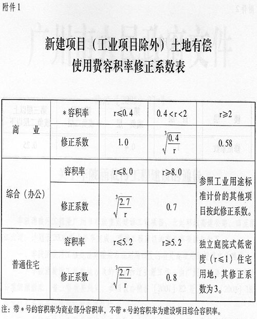 附件:1.新建项目 (工业项目除外)土地有偿使用费容积率修正系数表