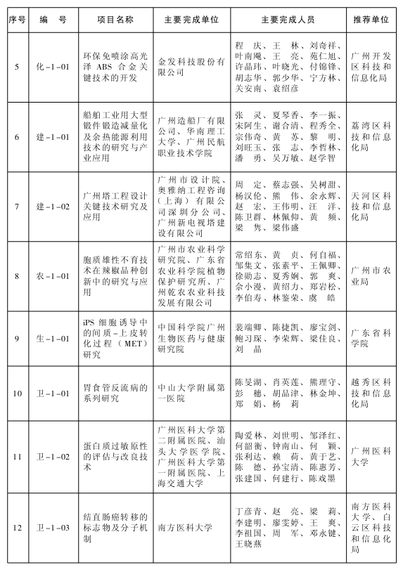 附件:1.2013年广州市科学技术奖获奖目录