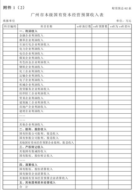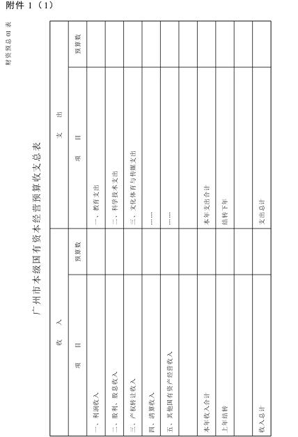 1预算收支表(财资预总01~05表,附件1.1-1.5),反映市本级国有资本经营预算收支汇总情况;