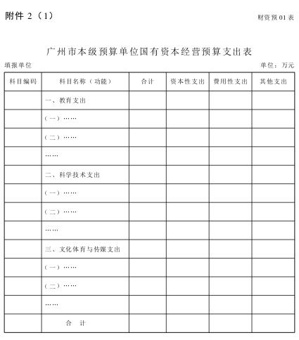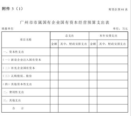 2市本级国有资产监管机构国有资本经营预算支出表(财资预01~03表,附件2.1-2.3),反映市本级国有资产监管机构所监管市属国有企业国有资本经营预算支出汇总情况;