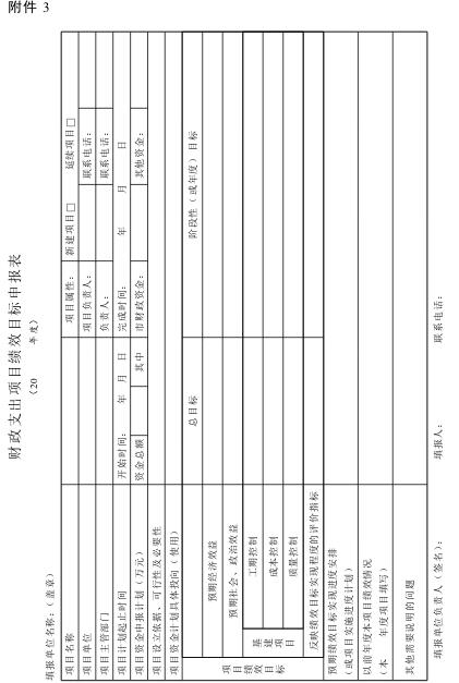 (五)落实绩效考核及其有关责任的措施,提交《财政支出项目绩效目标申报表》(附件3);