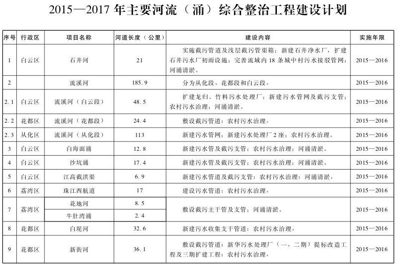 10.2015—2017年主要河流(涌)综合整治工程建设计划