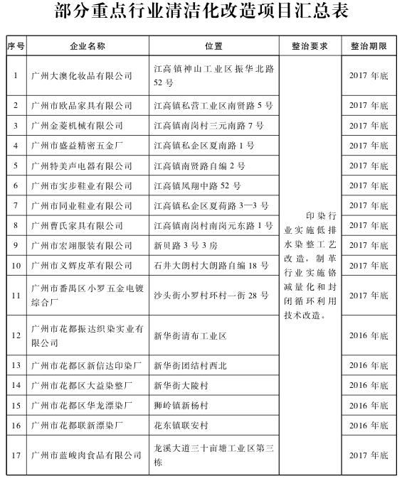 3.实施造纸、有色金属、印染、农副食品加工、原料药制造、制革、农药制造、电镀等行业清洁化改造。2017年底前,印染行业实施低排水染整工艺改造,制药(抗生素、维生素)行业实施绿色酶法生产技术改造,制革行业实施铬减量化和封闭循环利用技术改造。(市工业和信息化委、环保局牵头,市科技创新委等参与,各相关区政府落实)