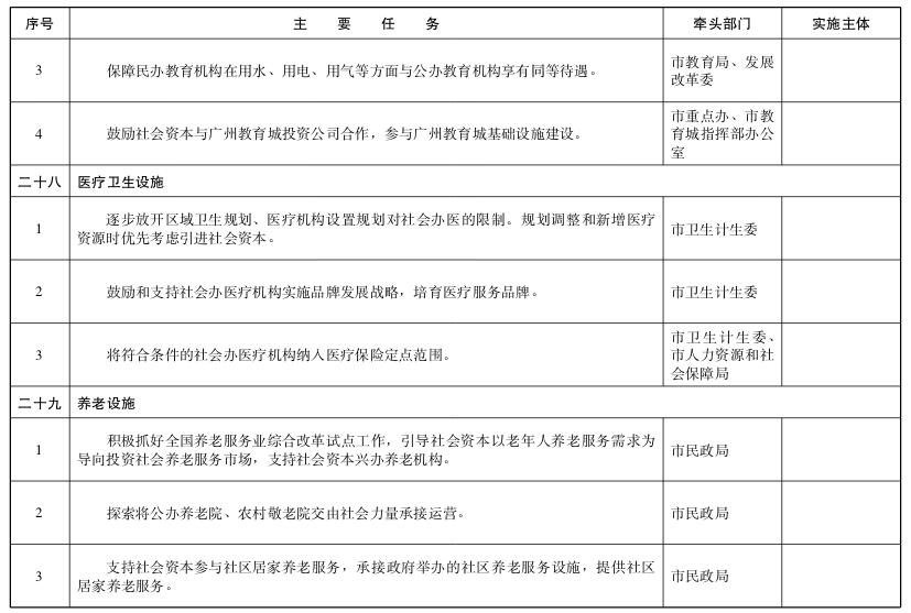 ——鼓励社会资本与广州教育城投资公司合作,参与广州教育城基础设施建设。