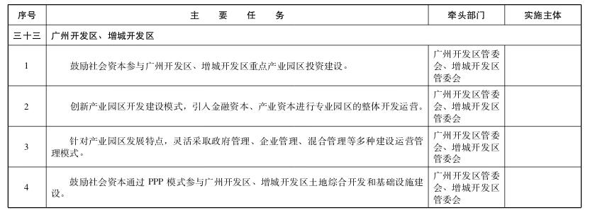 ——鼓励社会资本参与广州开发区、增城开发区土地综合开发和基础设施建设。